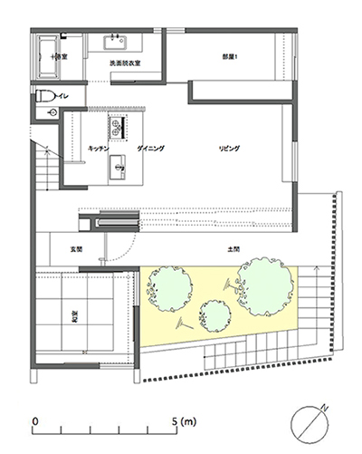 外壁/杉板 ウッドロング・エコ 中庭/土間・階段:洗い出し