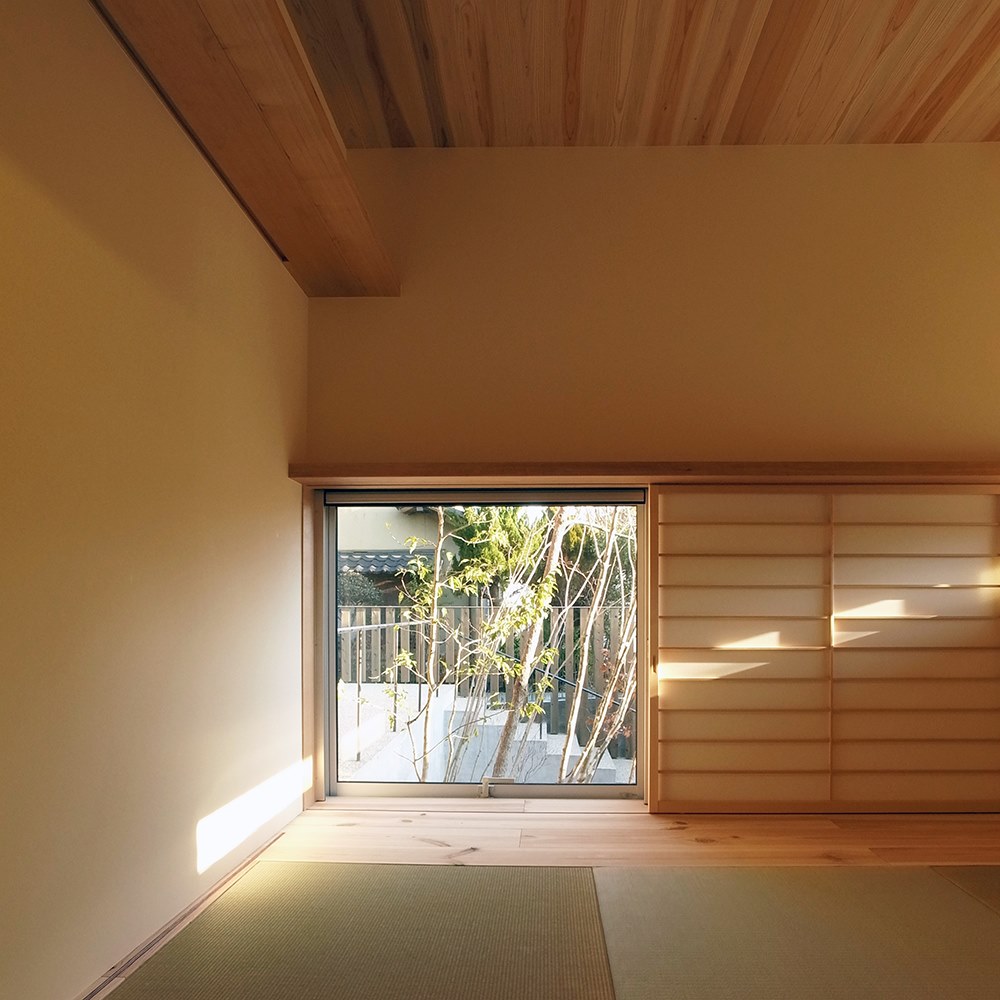 ・杉の格子で囲われた中庭|五月が丘の家所 在 大阪府吹田市五月が丘