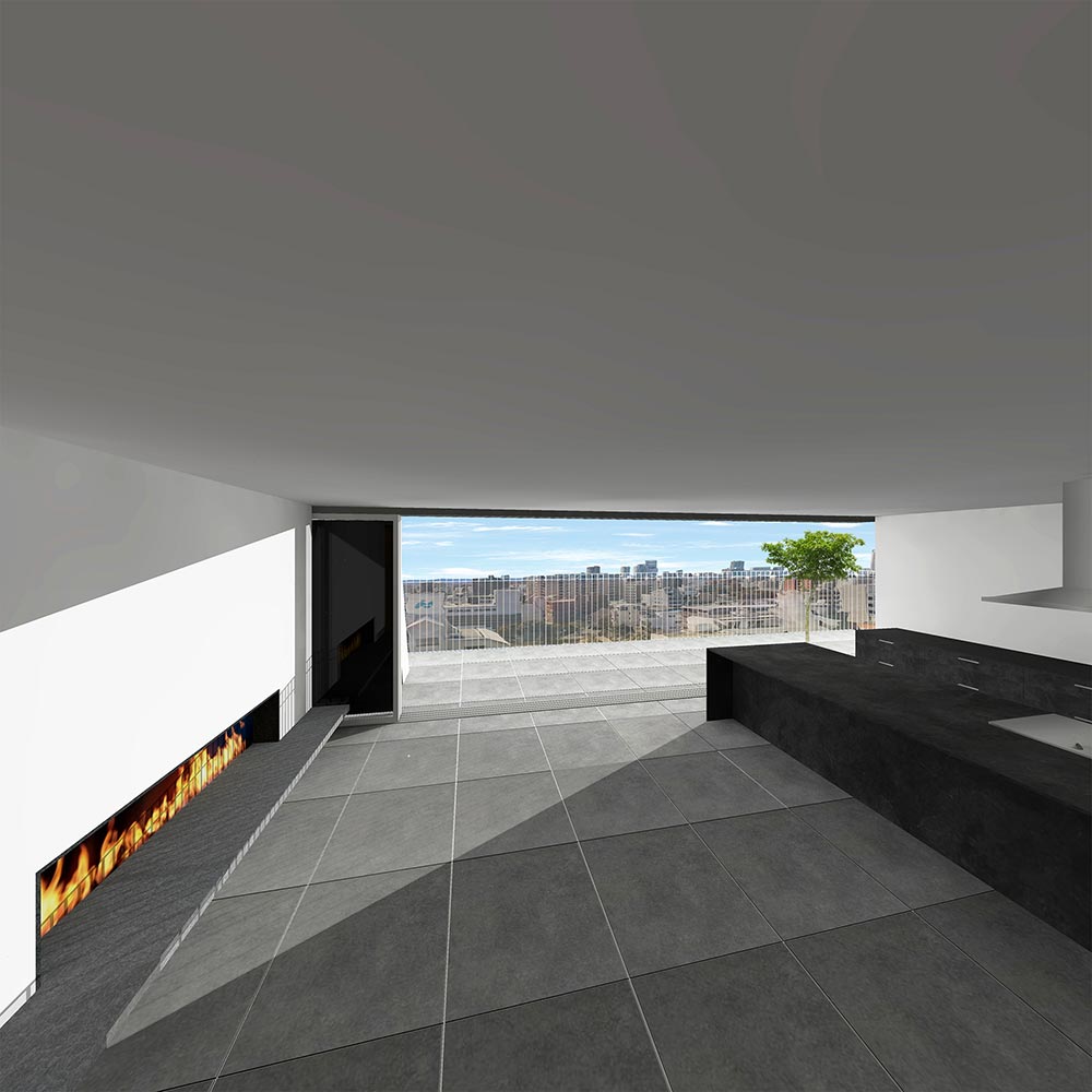 ごく普通に上下階で螺旋階段で繋がっているメゾネット形式を、最上階の住戸をさらに快適に、あたかも一戸建ての住宅がビルの上に建っているようにと考えたリノベーションの提案です。
